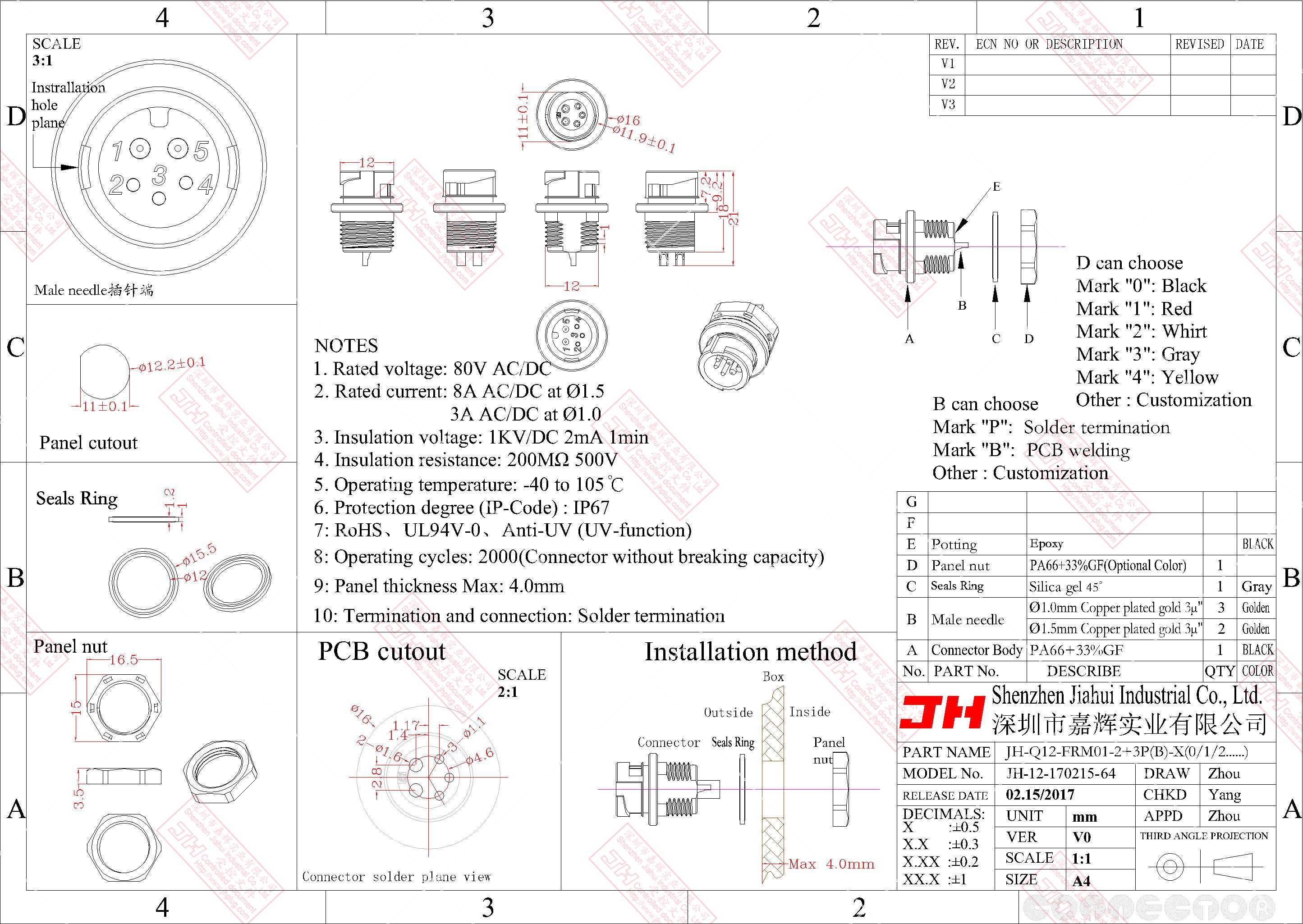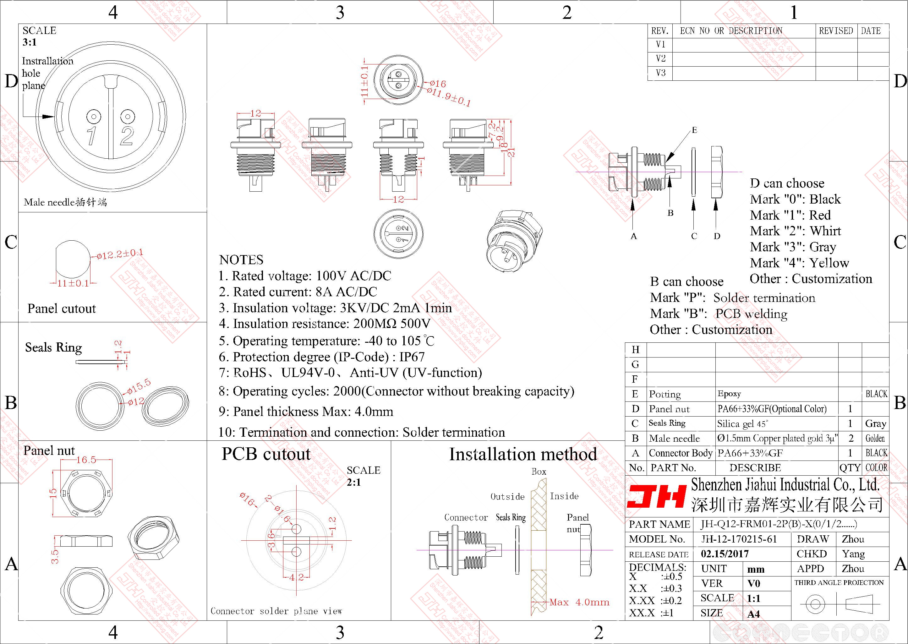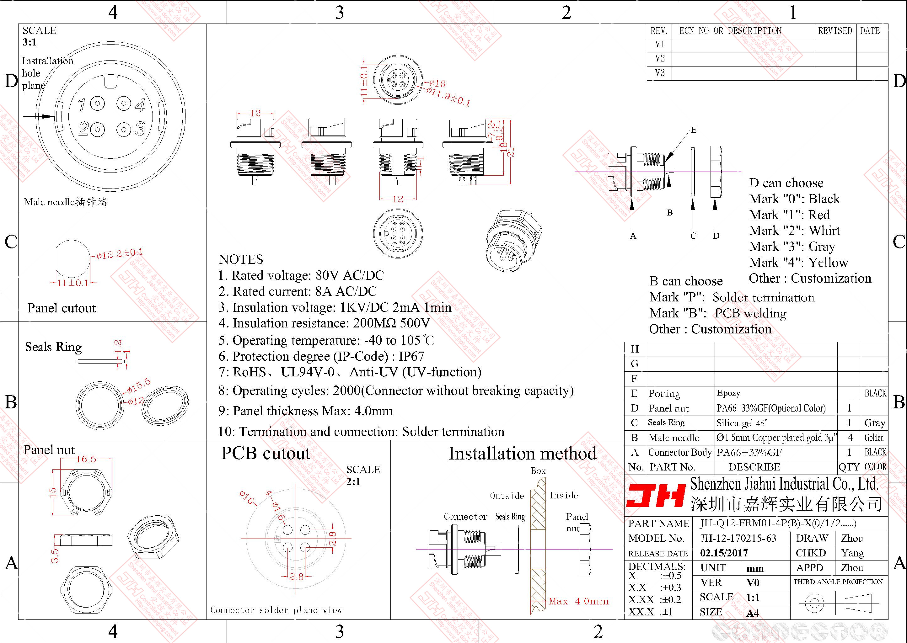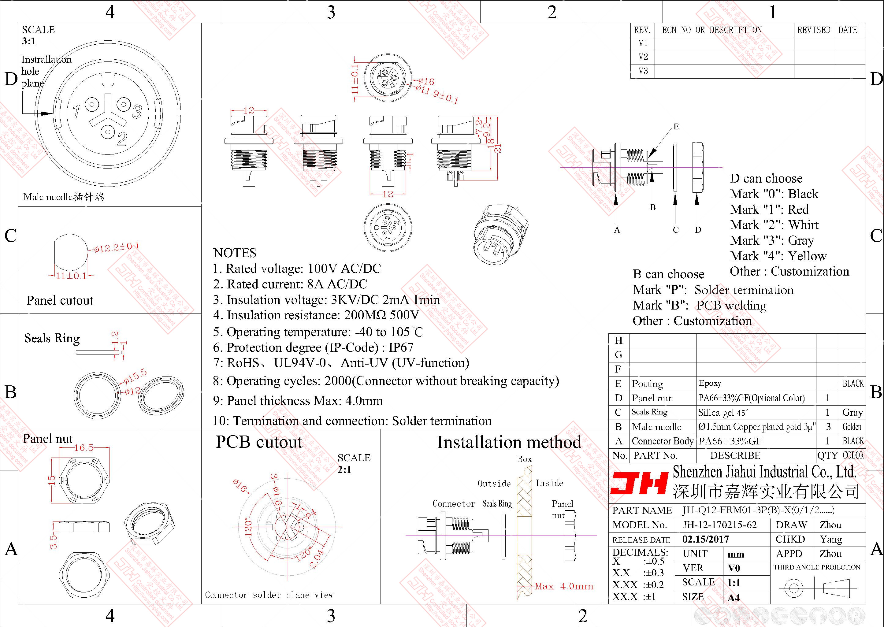 4、Standard M12 ×1.0 international thread design , Panel cutout 12mm, Panel thickness max.:4mm.