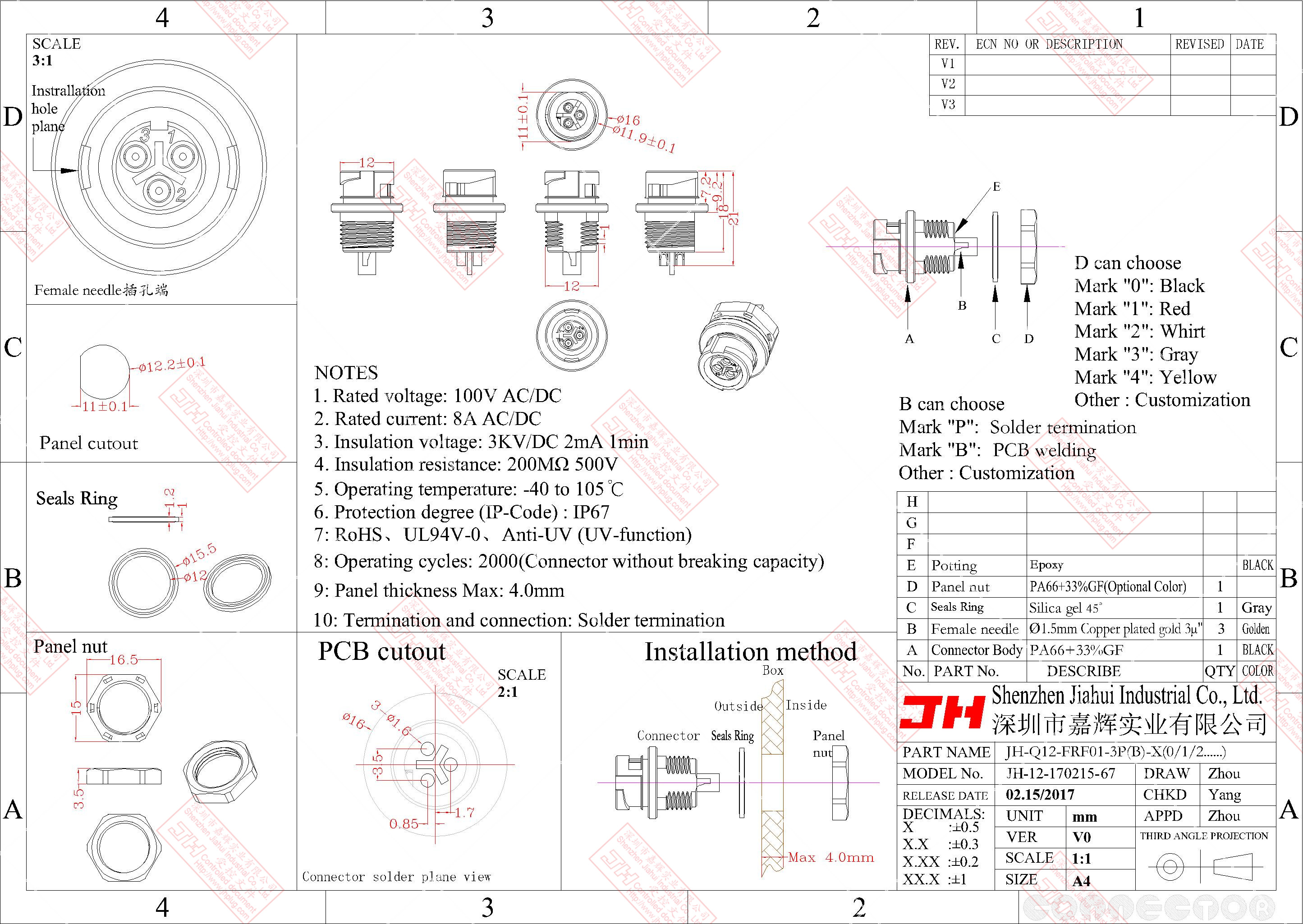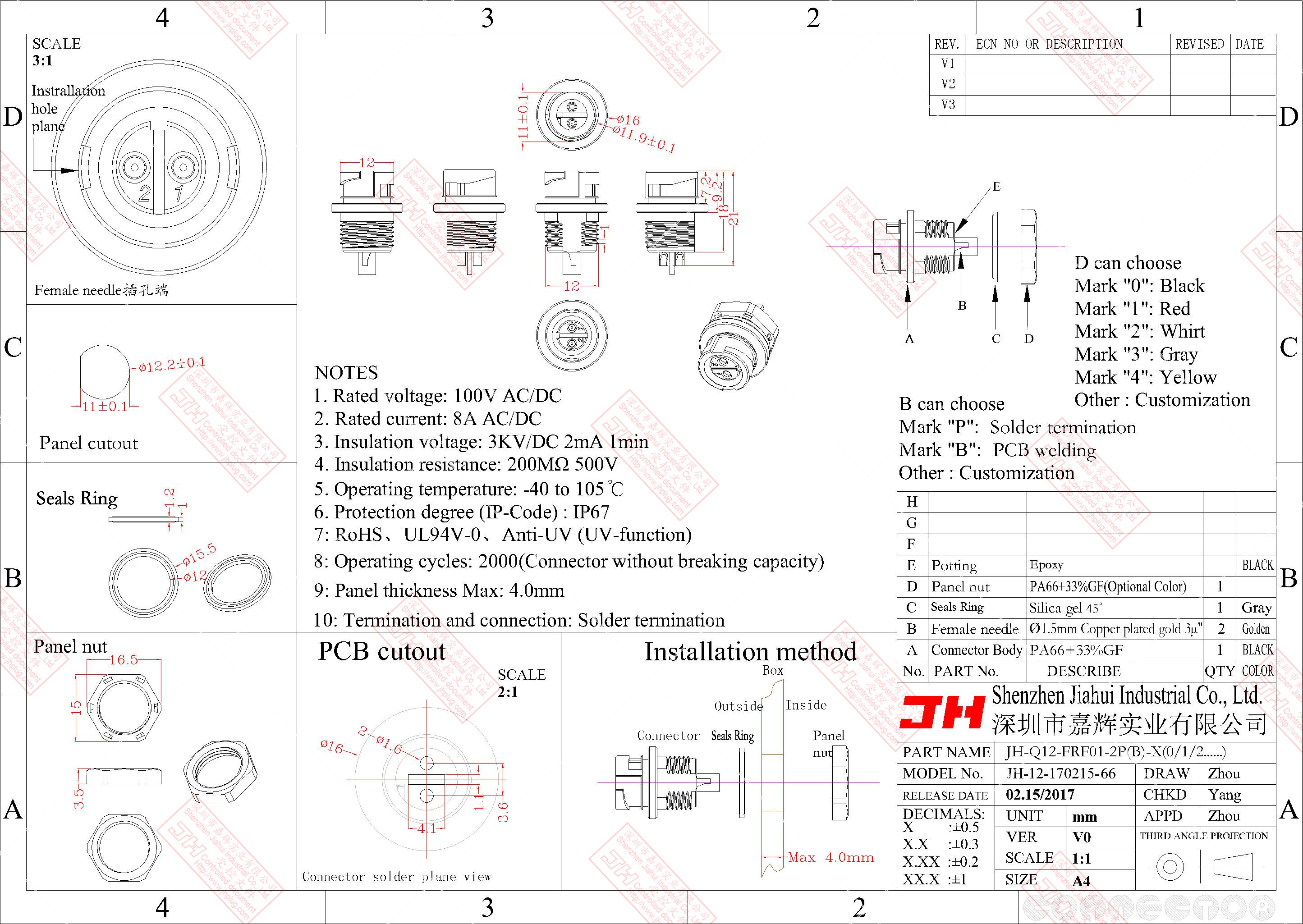 4、Standard M12 ×1.0 international thread design , Panel cutout 12mm, Panel thickness max.:4mm.