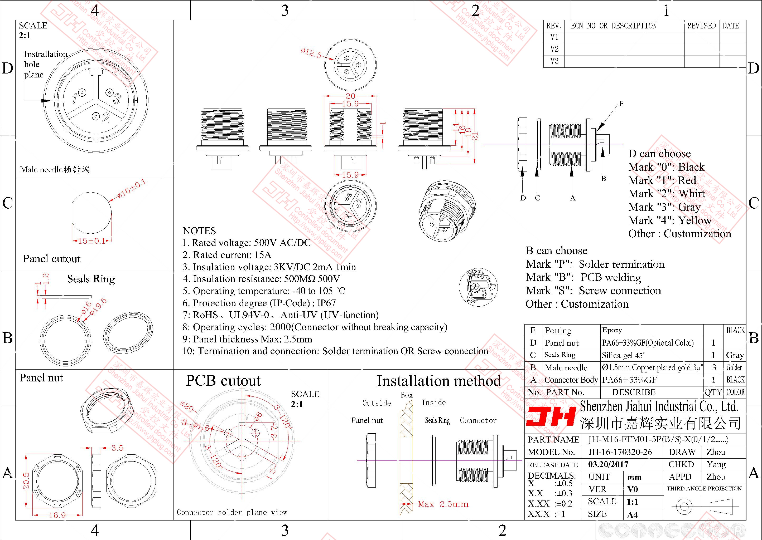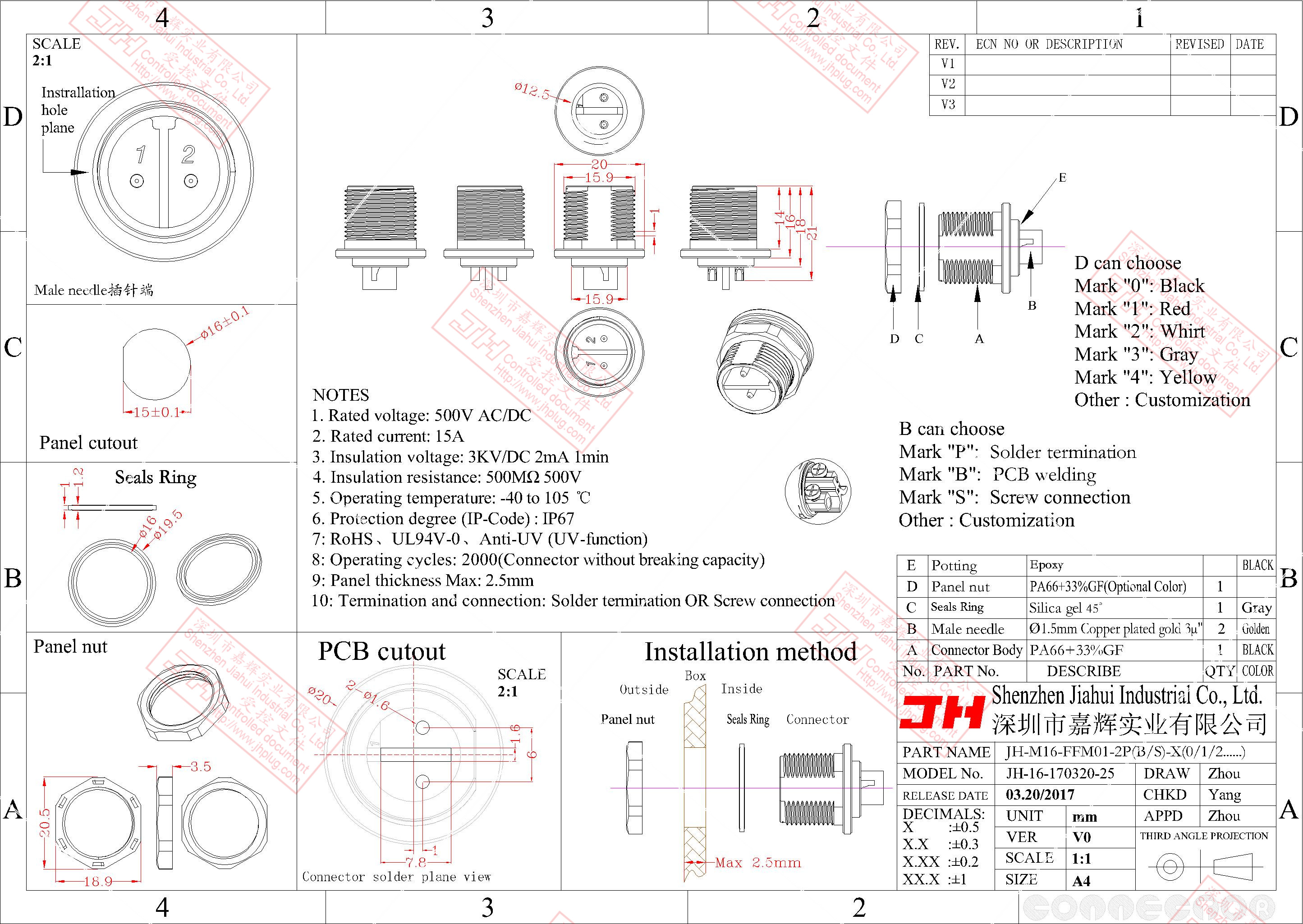 5、Standard M16 ×1.0 international thread design . Panel cutout 16mm, Panel thickness max.: 2.5mm.