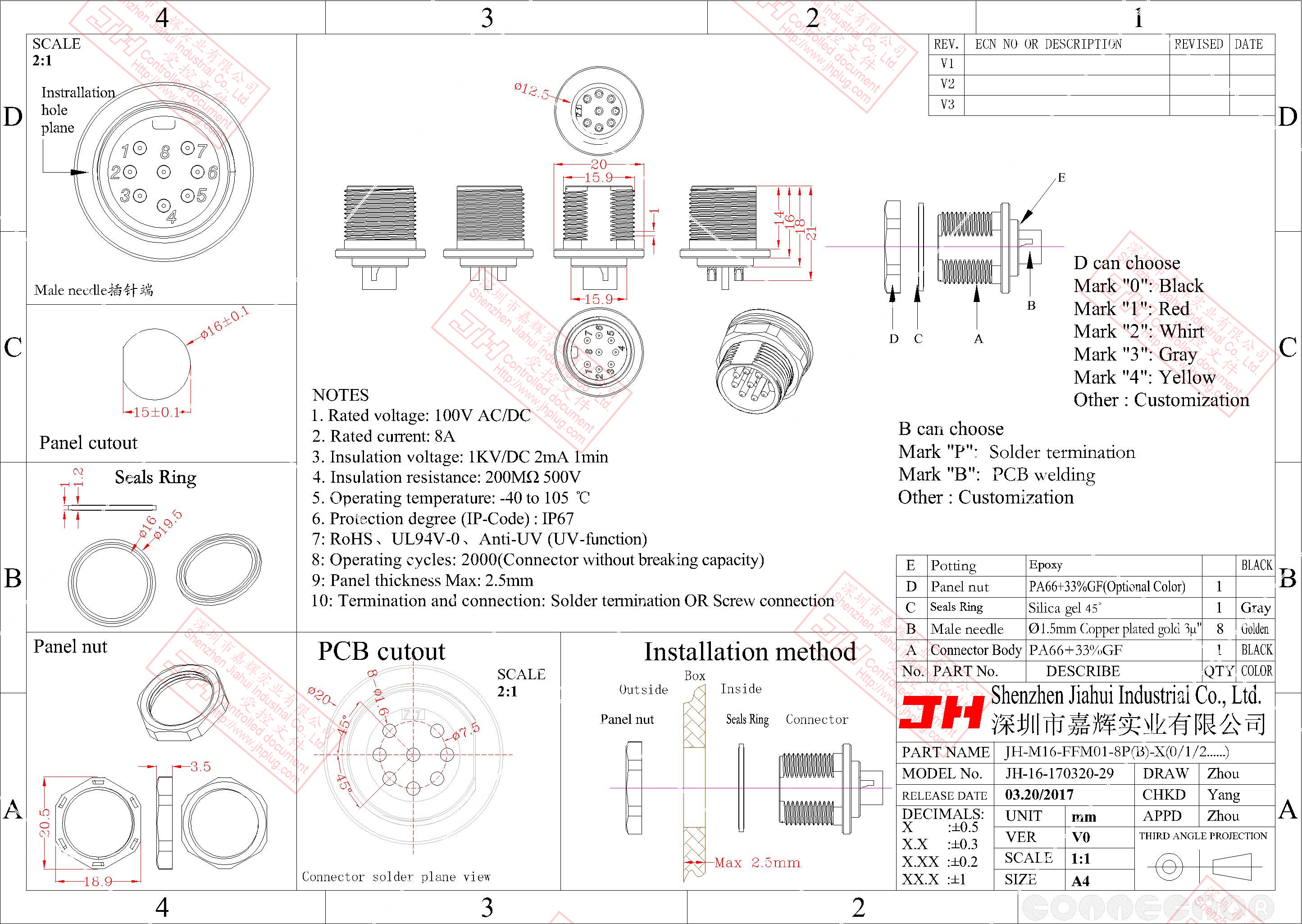 1、Multi-style inner core design(2、3、4、2+4、8 、12Pole),meet the diverse needs of the industry,Signal and power simultaneously compatible with both