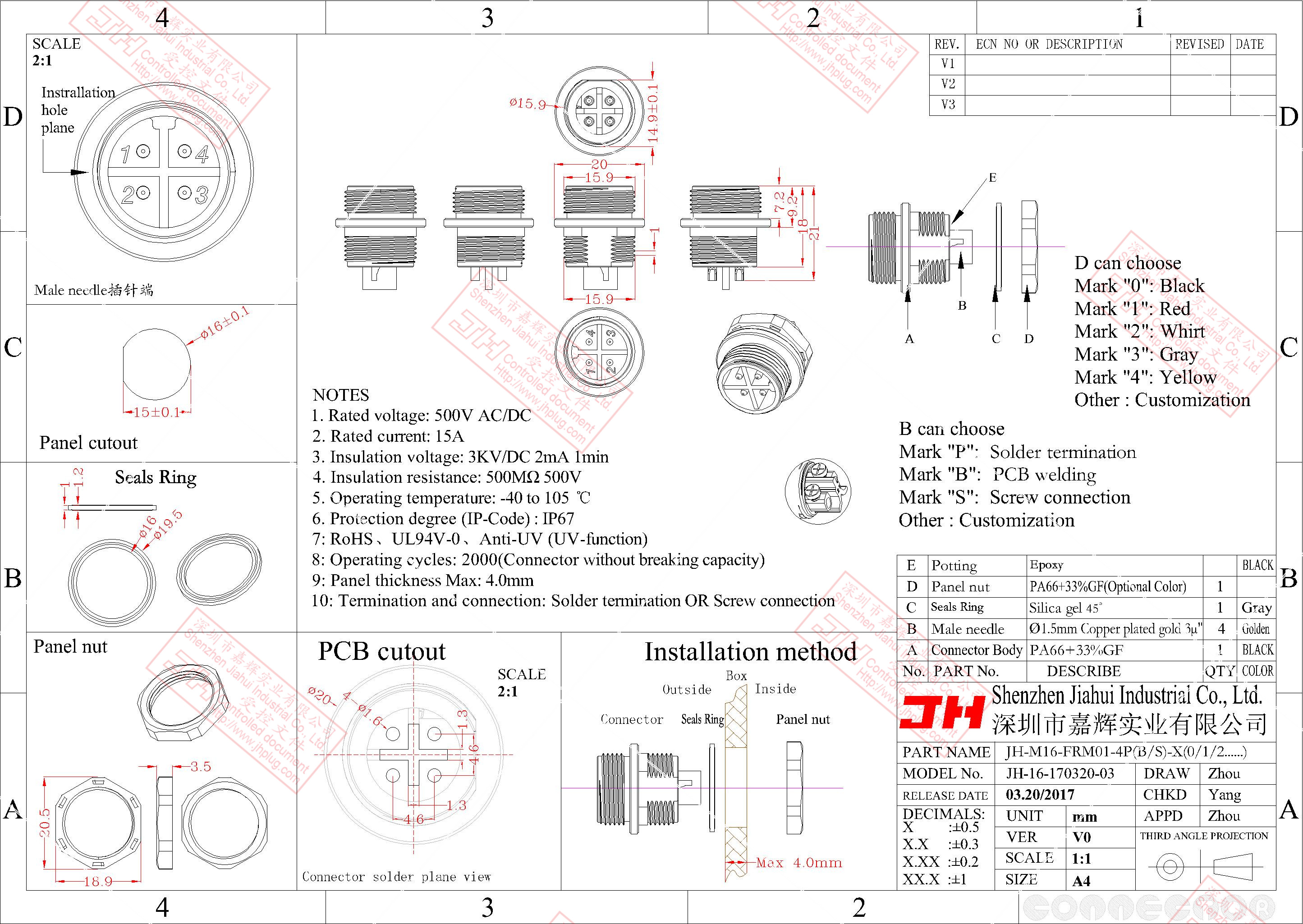 5、Standard M16 ×1.0 international thread design . Panel cutout 16mm, Panel thickness max.: 4mm.