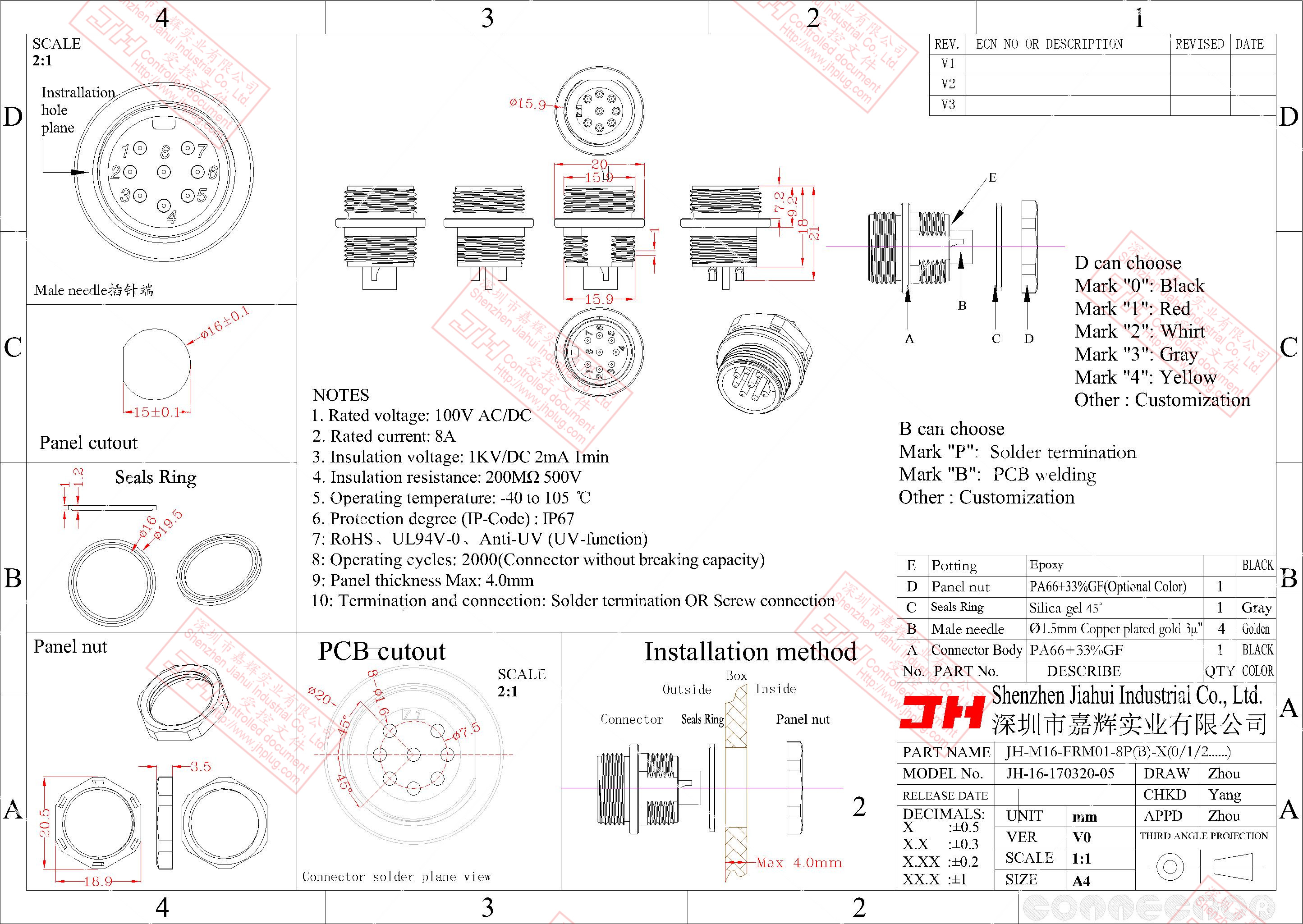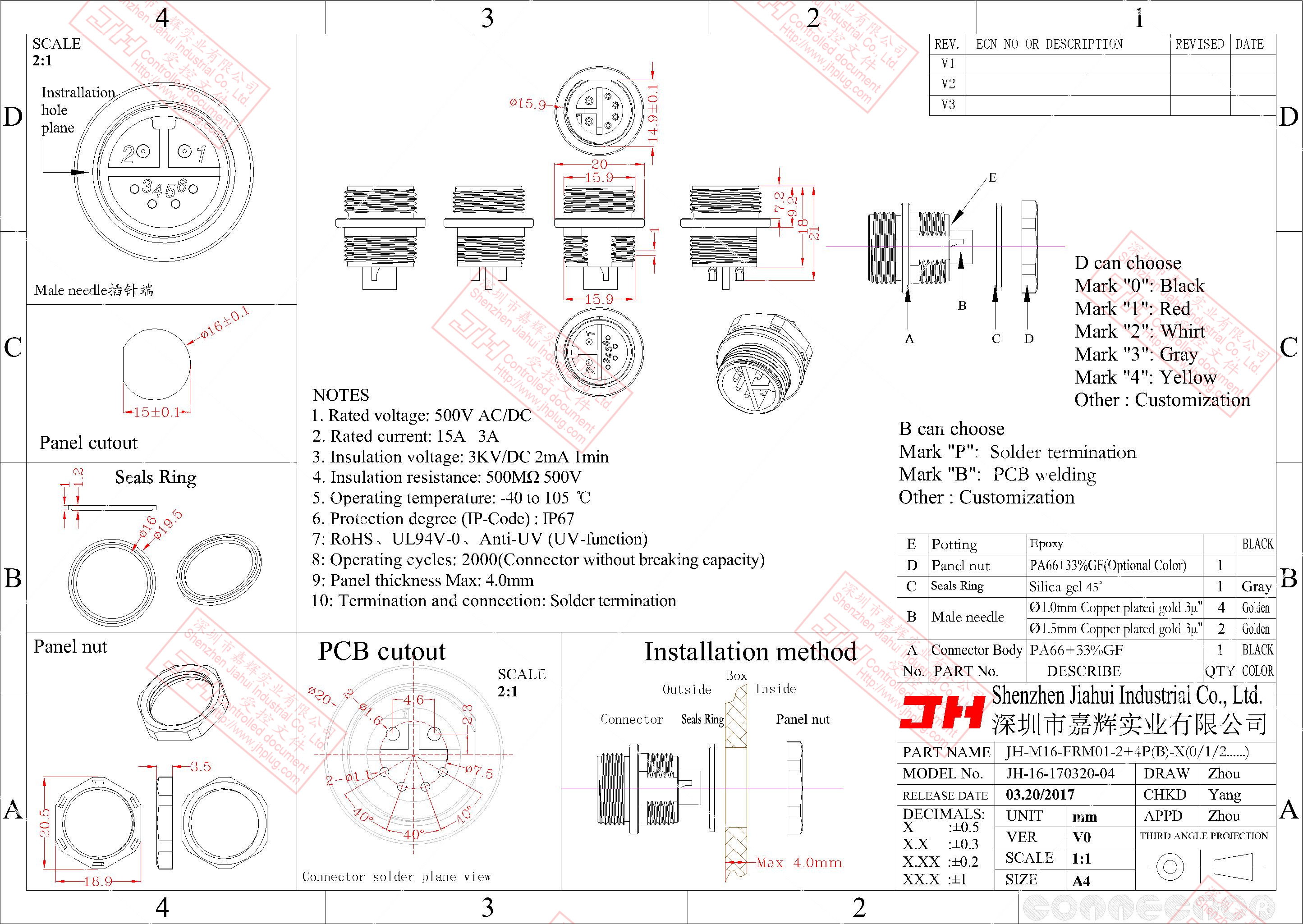 1、Multi-style inner core design(2、3、4、2+4、8 、12Pole),meet the diverse needs of the industry,Signal and power simultaneously compatible with both
