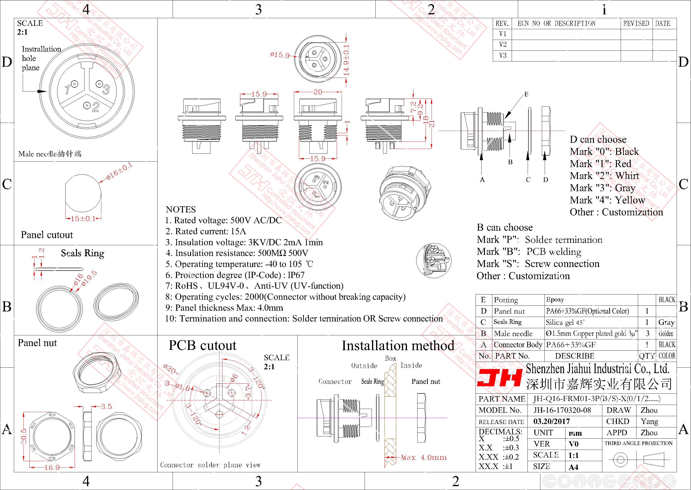 5、Quick lock connect design . Panel cutout 16mm, Panel thickness max.: 4mm.