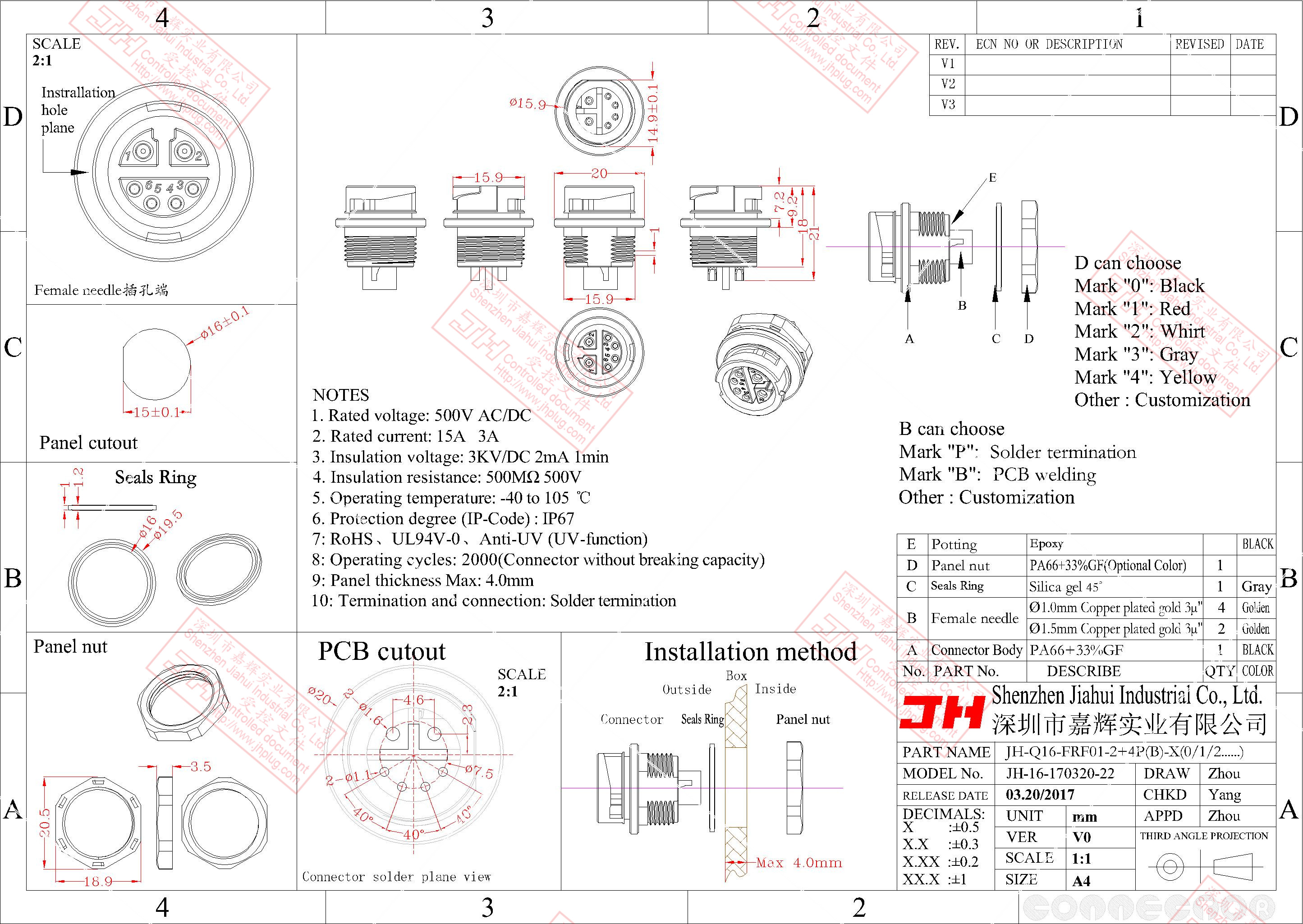 1、Multi-style inner core design(2、3、4、2+4、8 、12Pole),meet the diverse needs of the industry,Signal and power simultaneously compatible with both