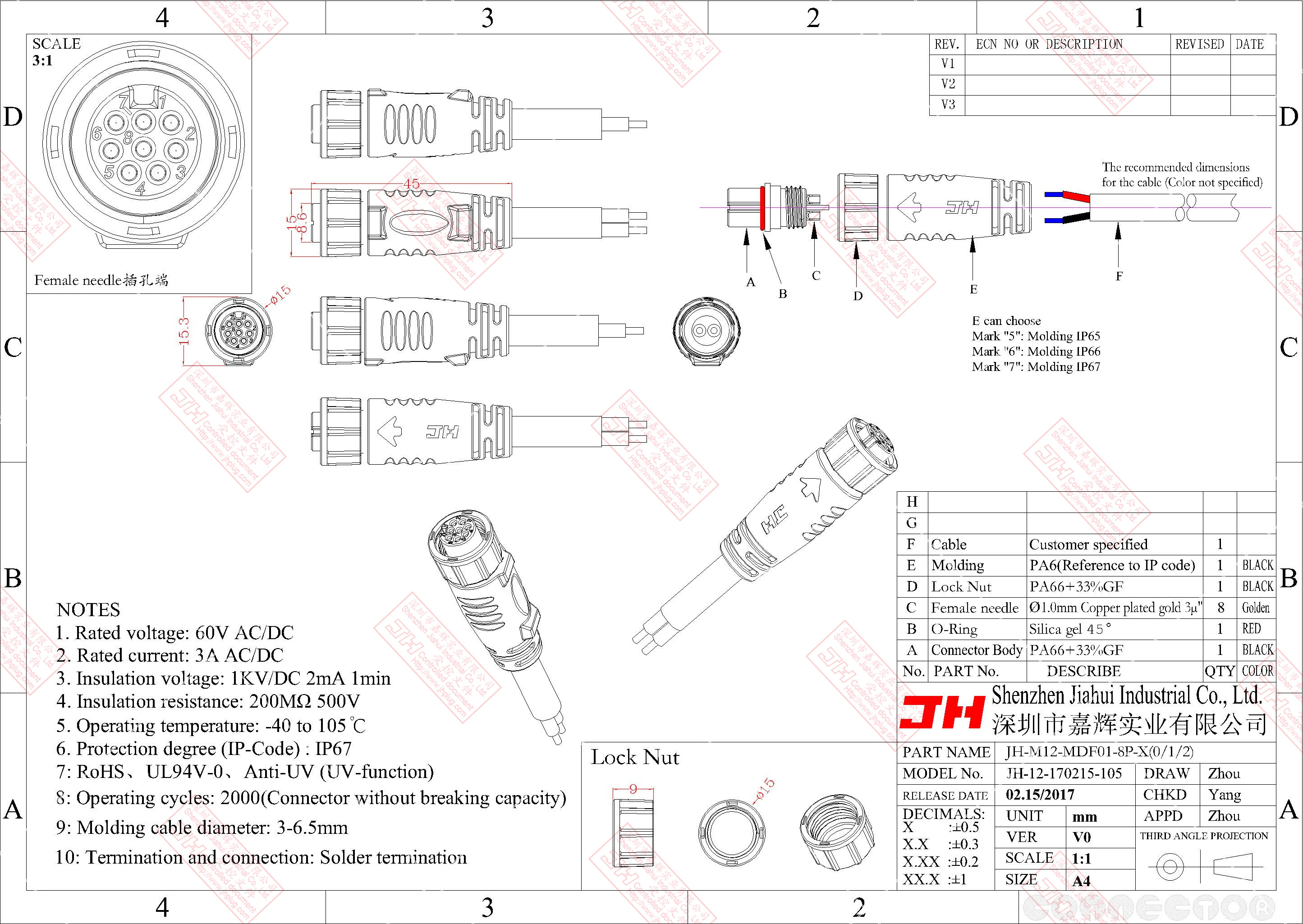 1、多款式的内芯设计(2、3、4、2+3、8芯),符合多样性的工业需求,信号及电源同时兼容匹配。