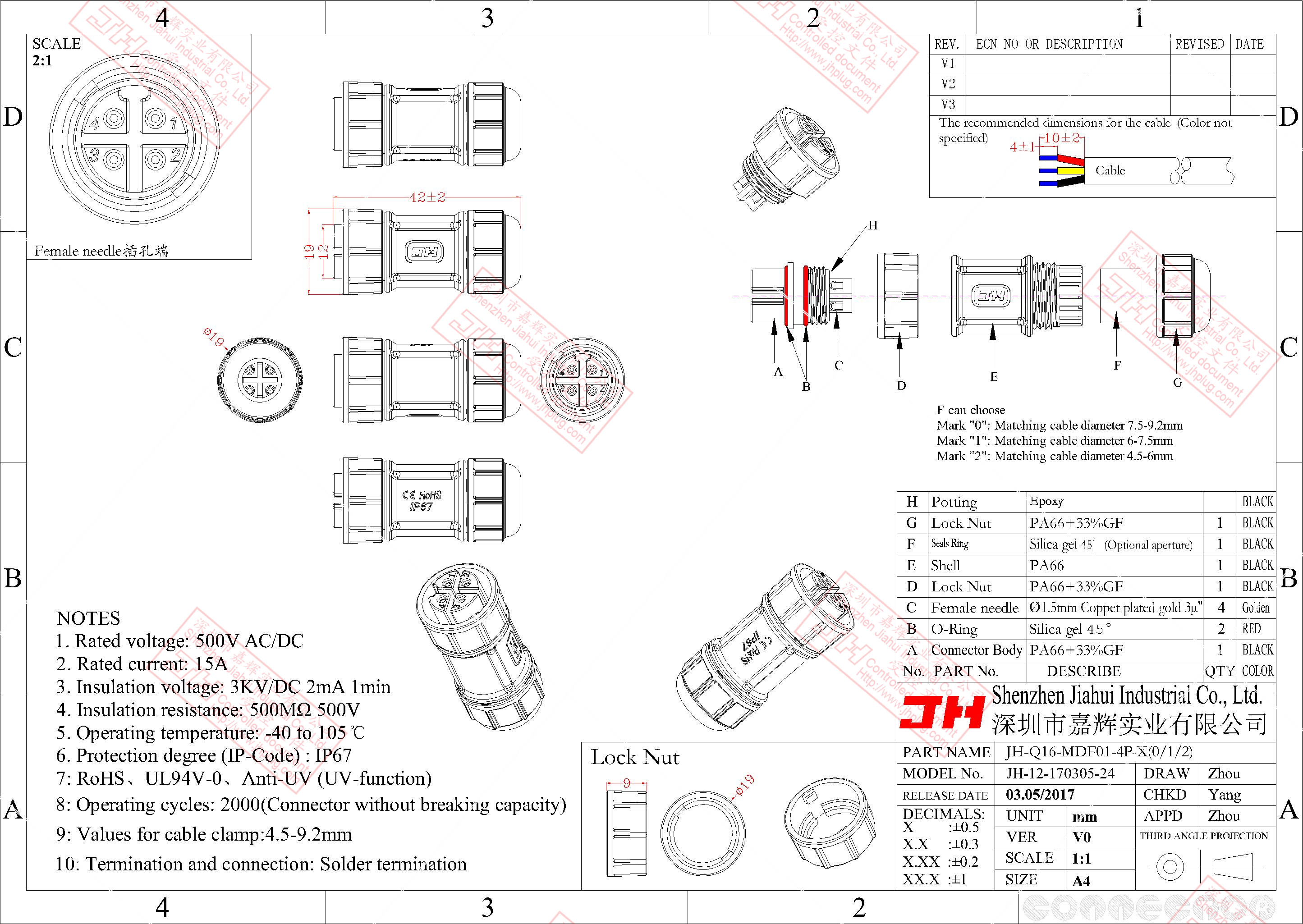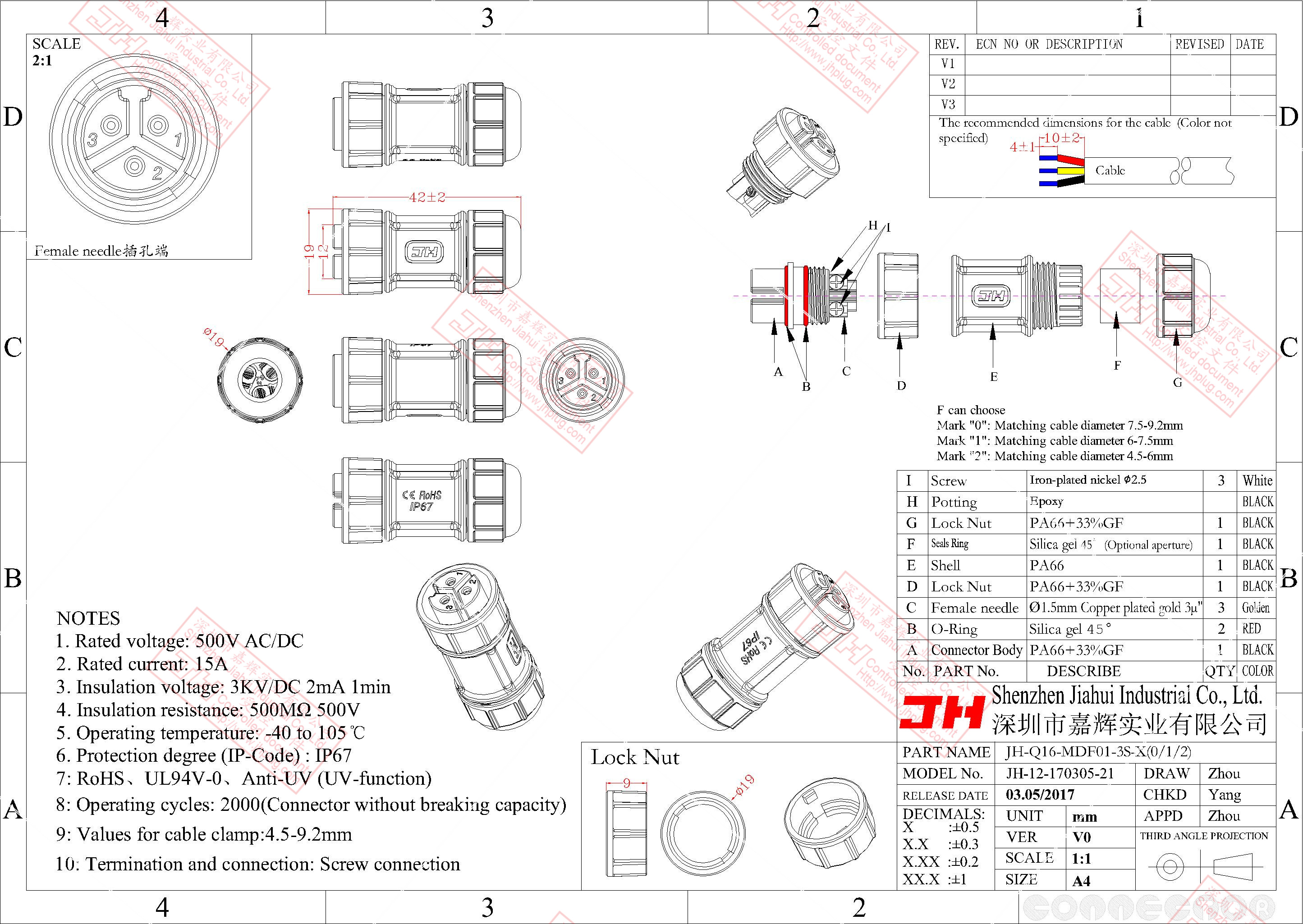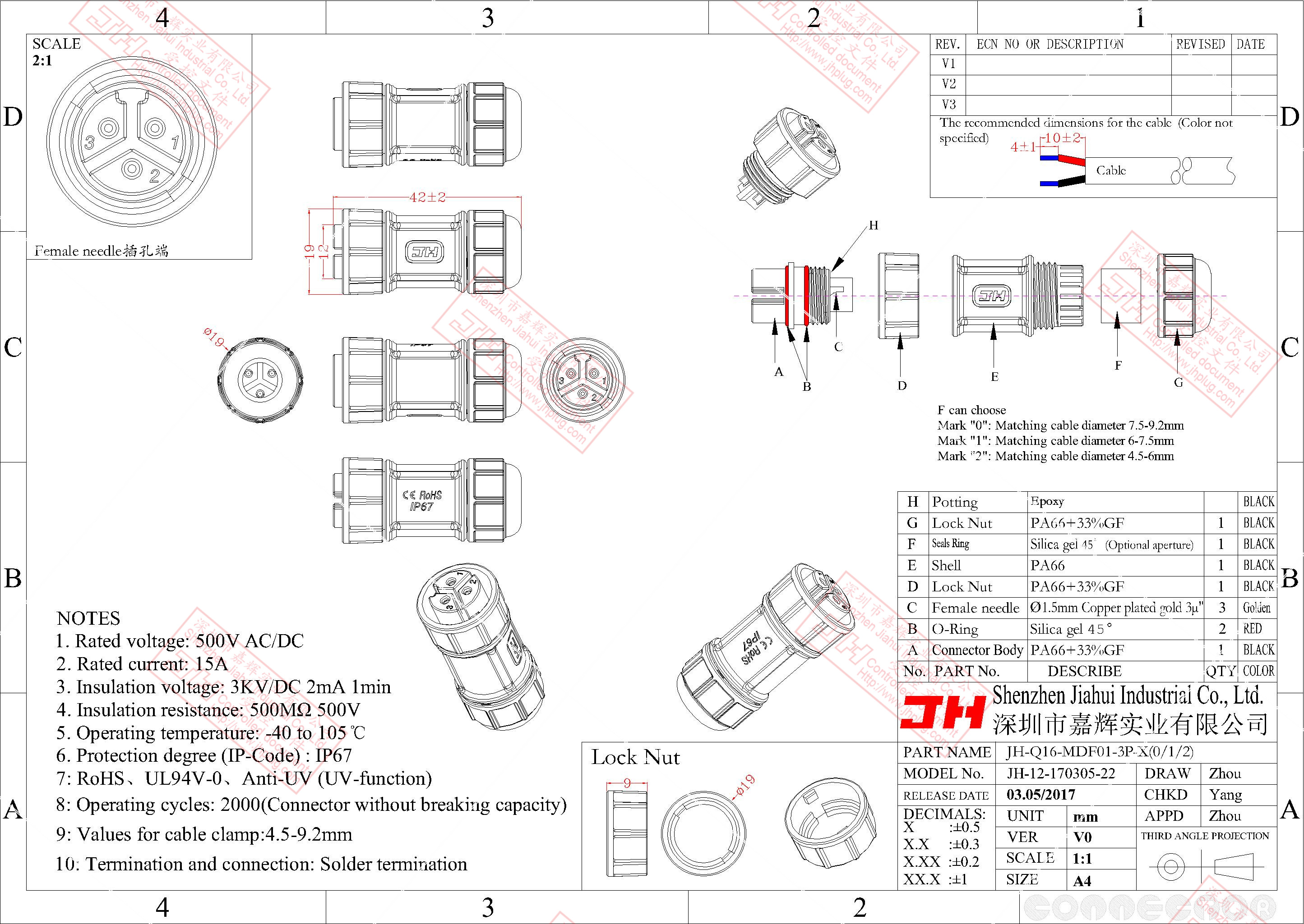 3、尼龙材质,稳定的电气性能,高强的抗耐压,抗高温,抗爆,抗腐蚀性。