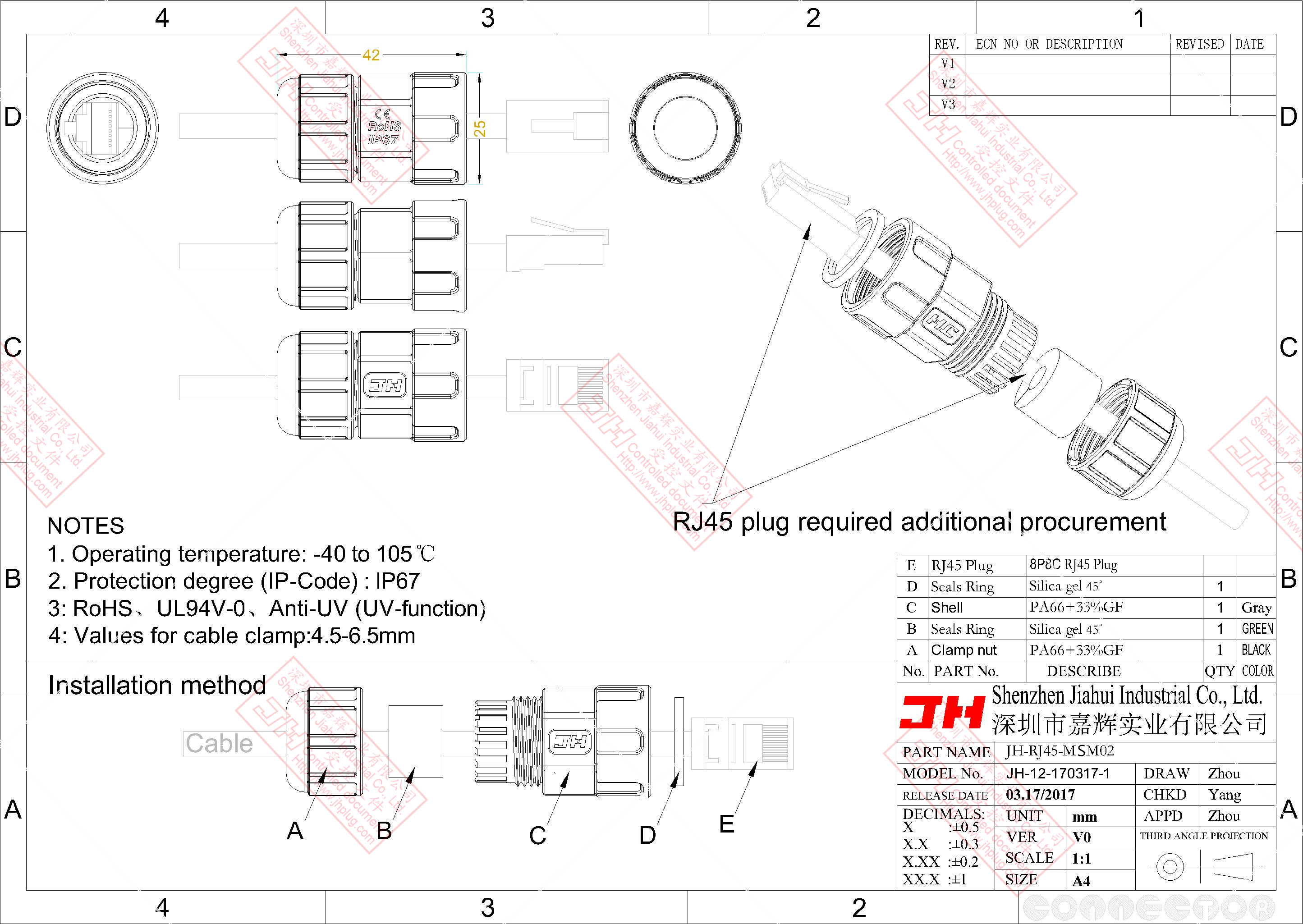 1、RJ45插头可以先压接好,然后直接穿过外壳。