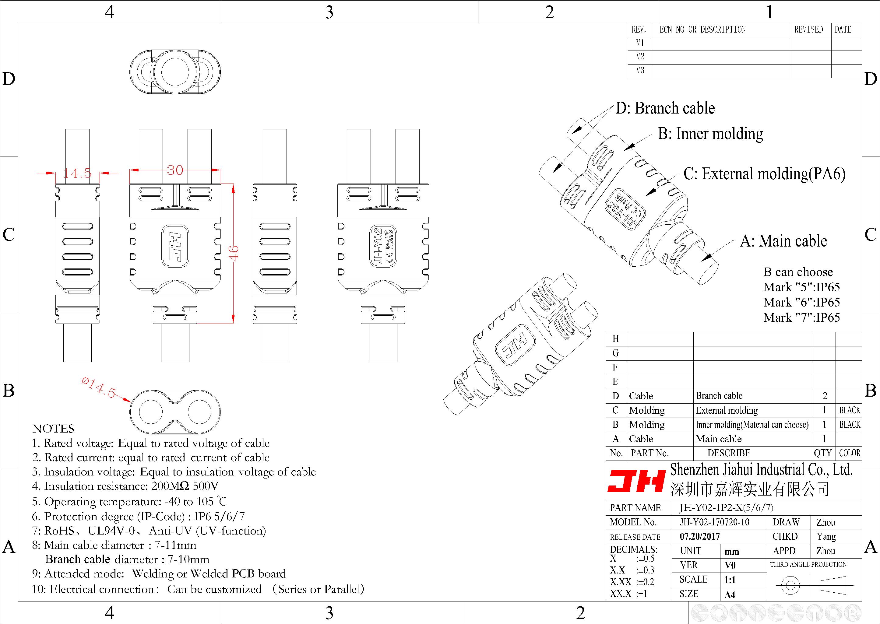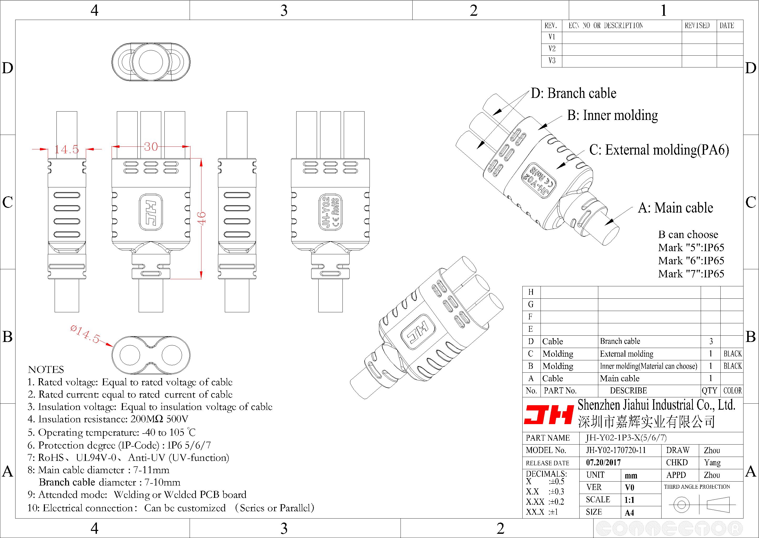 3、尼龙材质,稳定的电气性能,高强的抗耐压,抗高温,抗爆,抗腐蚀性。