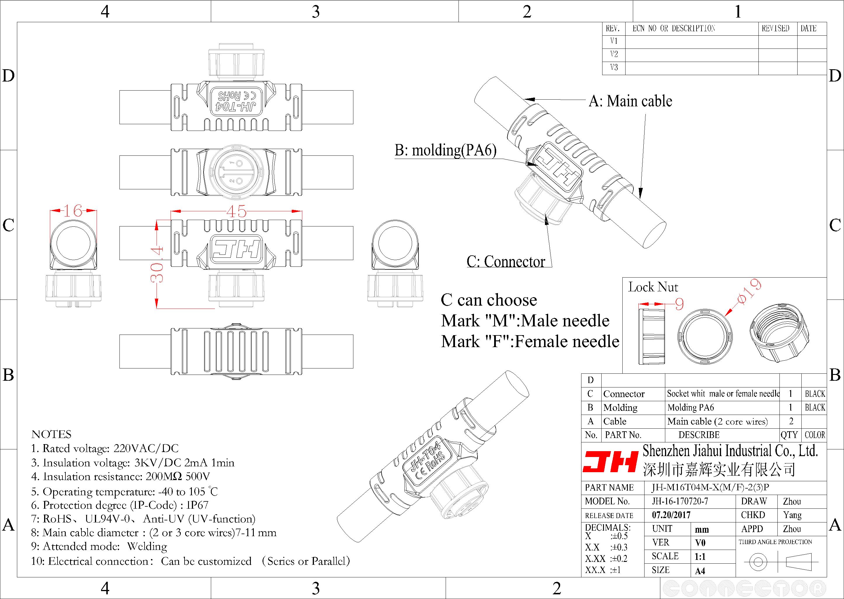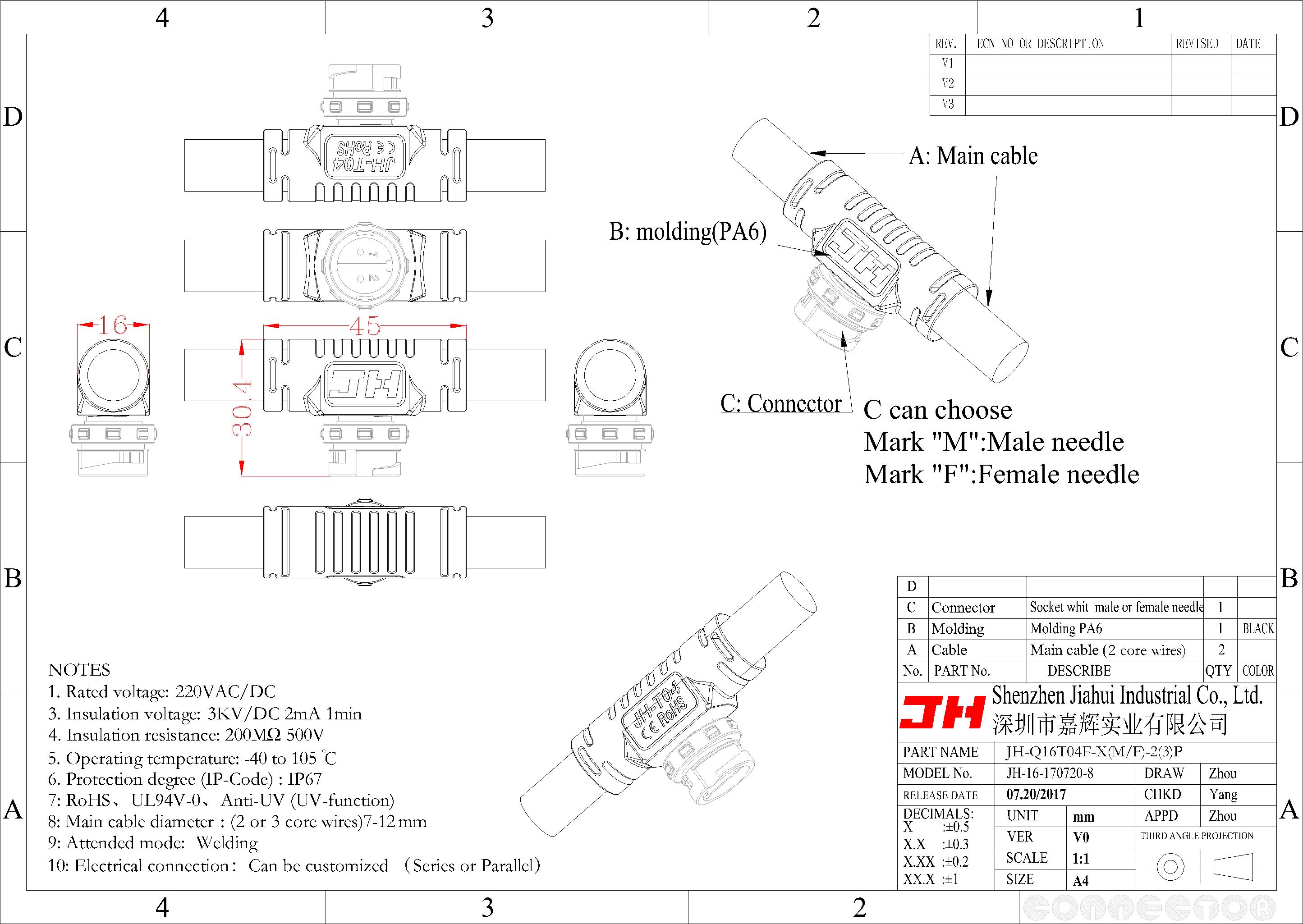 3、尼龙材质,稳定的电气性能,高强的抗耐压,抗高温,抗爆,抗腐蚀性。